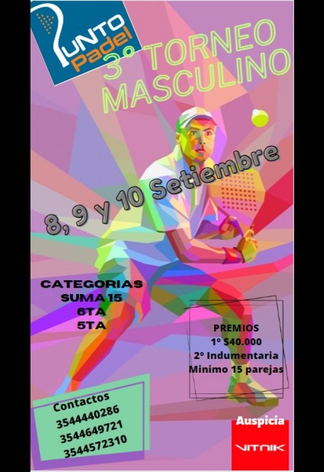 »» Evento: TORNEO MASCULINO 3 FECHA-CATEGORIAS SUMA 15- 6ta- 5ta »» Localidad: Villa Dolores »» Fechas: 08/09/2023 al 10/09/2023